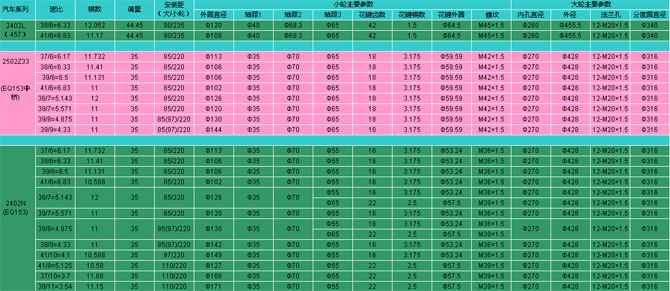 首頁 ? 產品展示 ? 漸縮齒汽車系列 | 速比 |