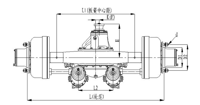 1.橋殼加強型設計,承載能力強;2.車輪輪輞定位方式可采用球面定位或止口定位;3.板簧距與輪距可以靈活調整